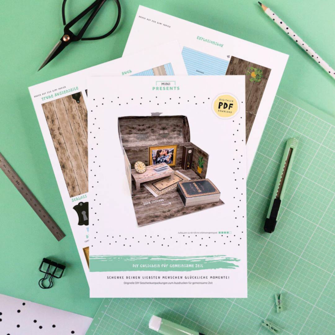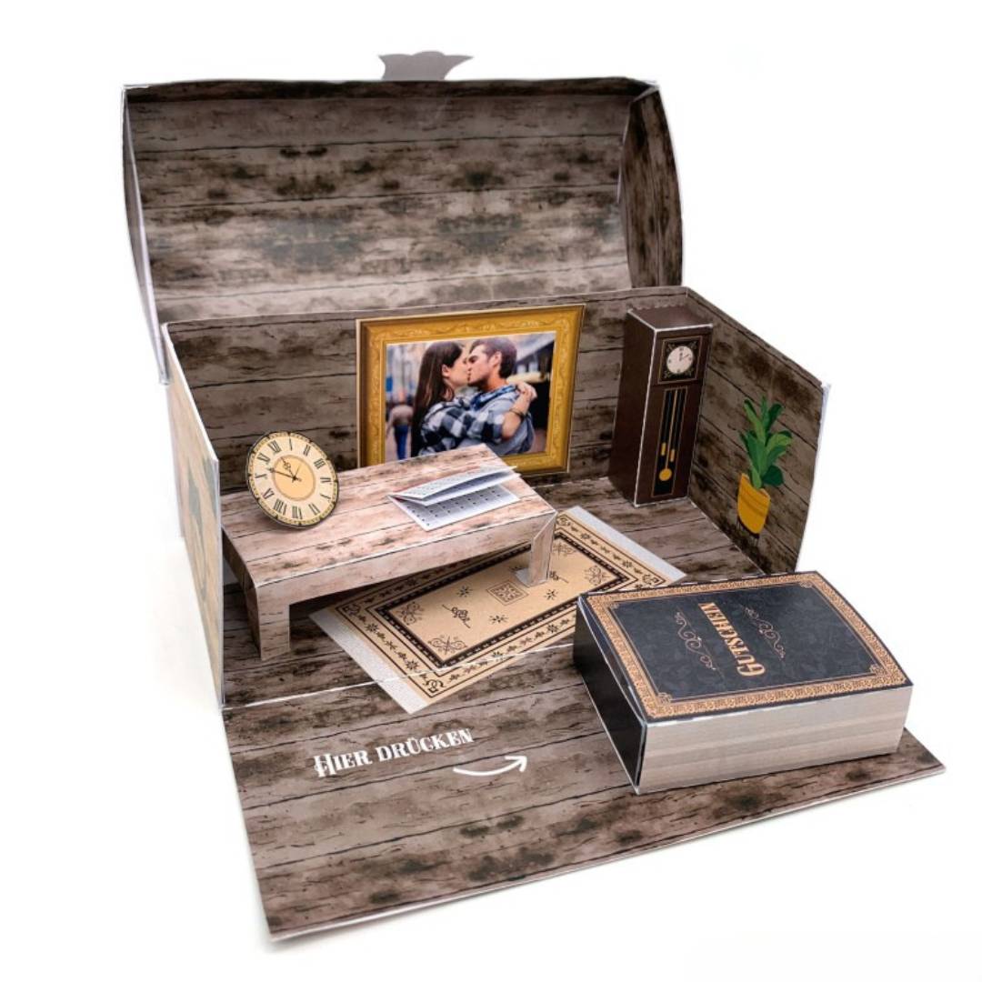 Stell dir vor, du öffnest eine unscheinbare Box, und plötzlich entfaltet sich vor dir eine Welt voller persönlicher Erinnerungen, liebevoller Botschaften und gemeinsamer Erlebnisse. Mit dieser DIY-Explosionsbox "Gemeinsame Zeit" kannst du genau dieses magische Erlebnis selbst gestalten – eine wirklich besondere Möglichkeit, deine wertvollsten Momente auf kreative und herzliche Weise zu verschenken.