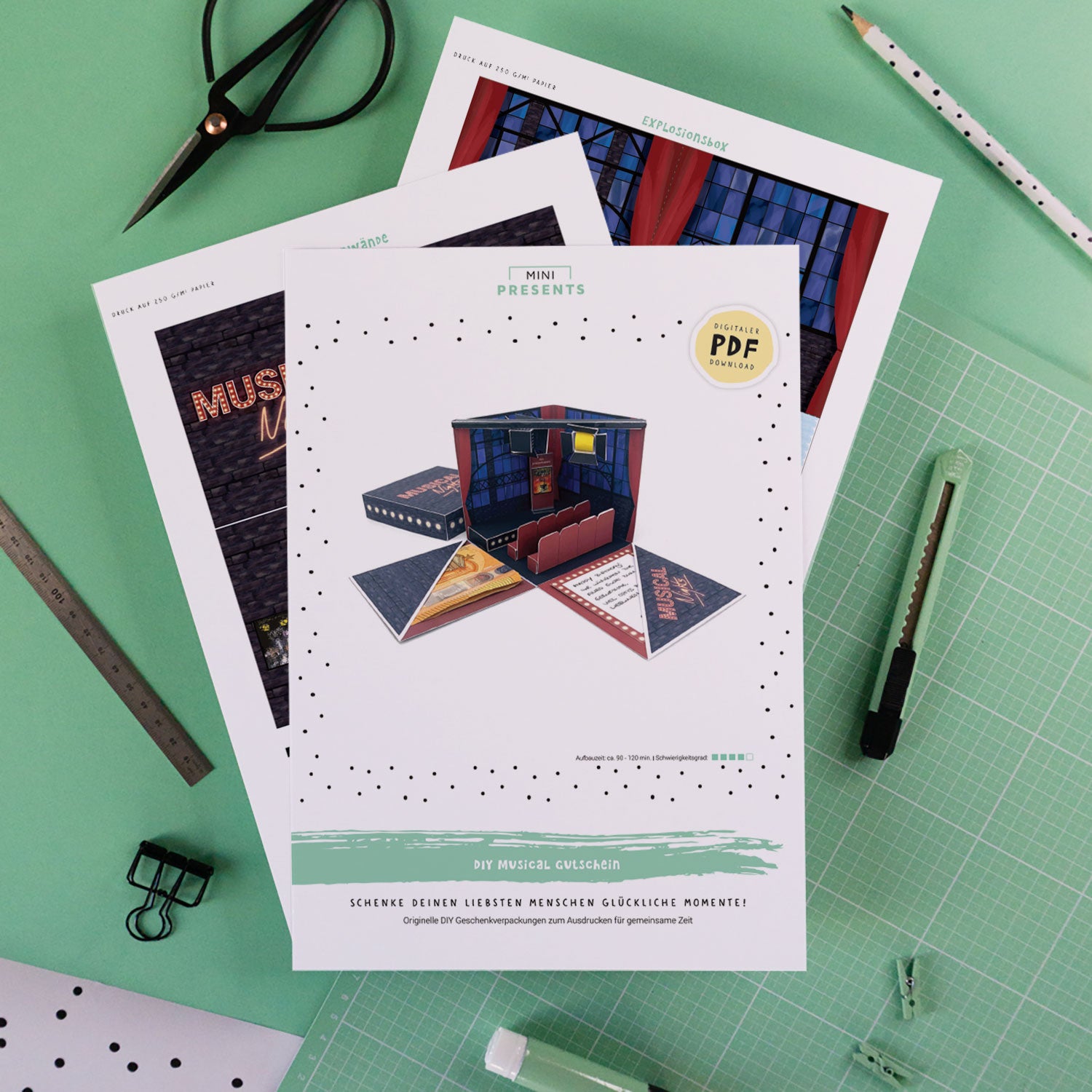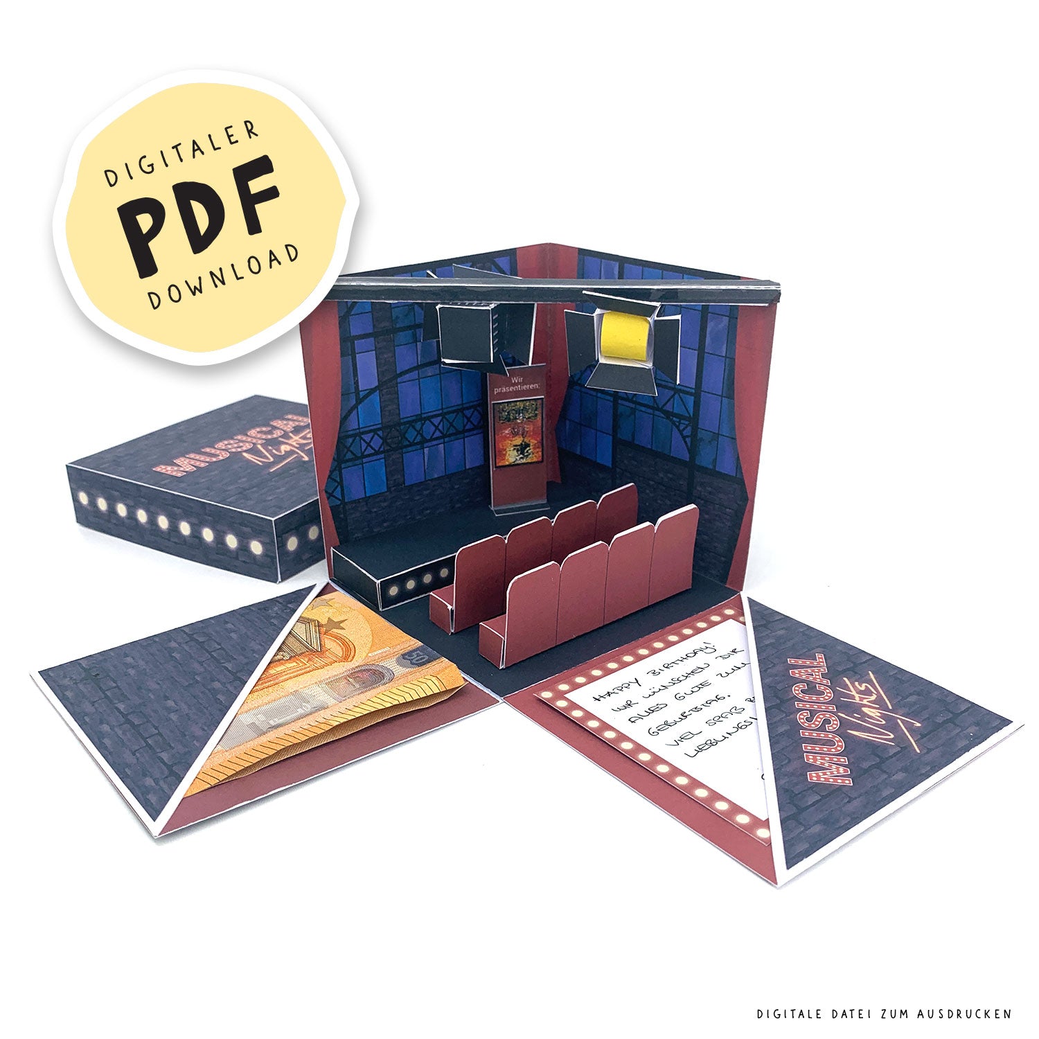 - Dieses Produkt ist eine Explosionsbox zum sofortigen Download und basteln. Eine ganz besonders kreative Geschenkverpackung für Musicalkarten oder einen Musicalgutschein.