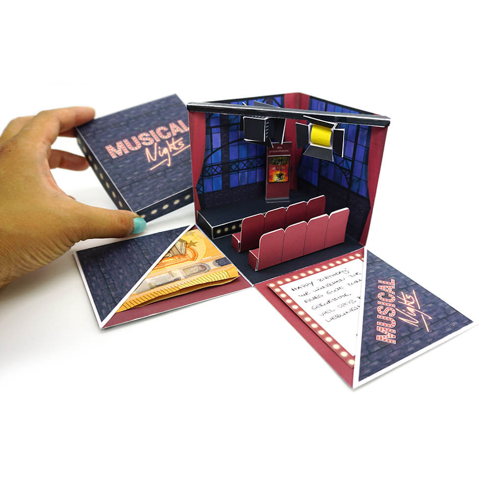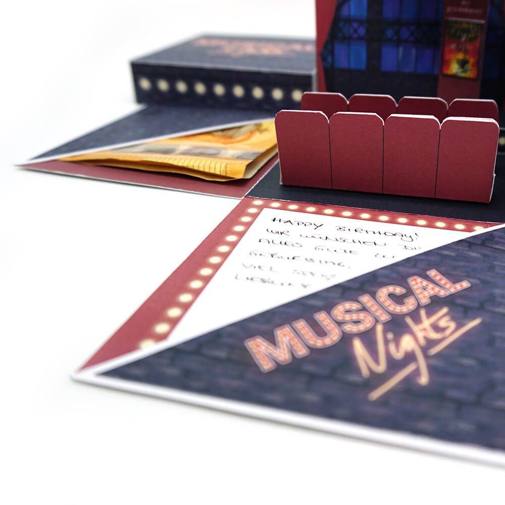 Ein Musical ist ein ganz besonderes Ereignis. Wahrscheinlich verschenkt man es nicht so oft. Dafür kannst du deine Musicalgutscheine ganz besonders in dieser Pop-Up Geschenkbox überreichen.