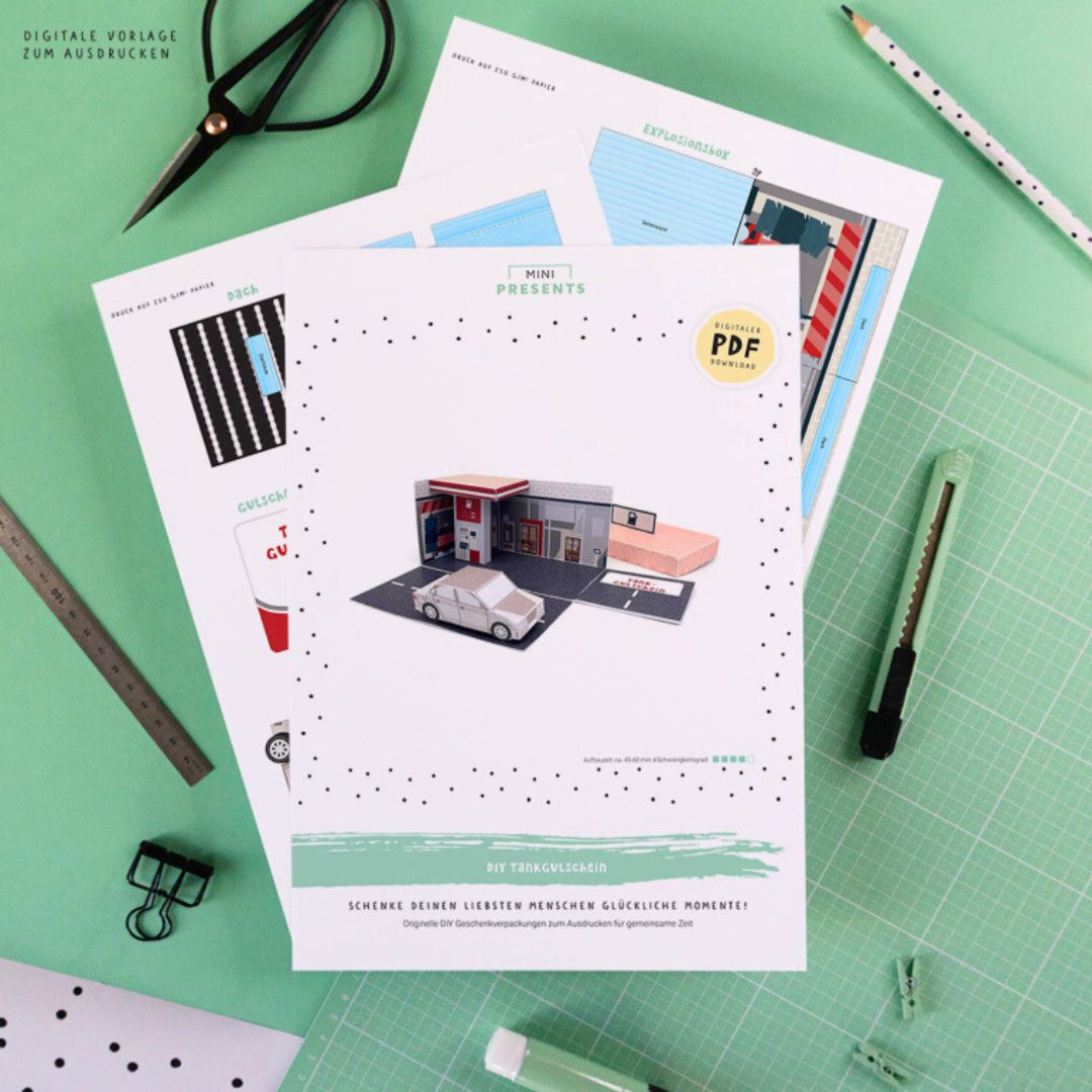 Mach aus einem einfachen Tankgutschein ein ganz individuelles Geschenk! Diese DIY-Geschenkbox zum Basteln ist super für jeden Anlass: zum bestandenen Führerschein, als Urlaubsvorfreude, für das neue Auto oder einfach als liebe Überraschung für Freunde und Familie.