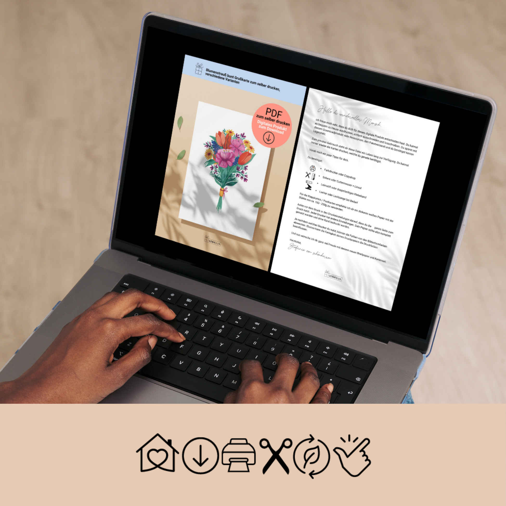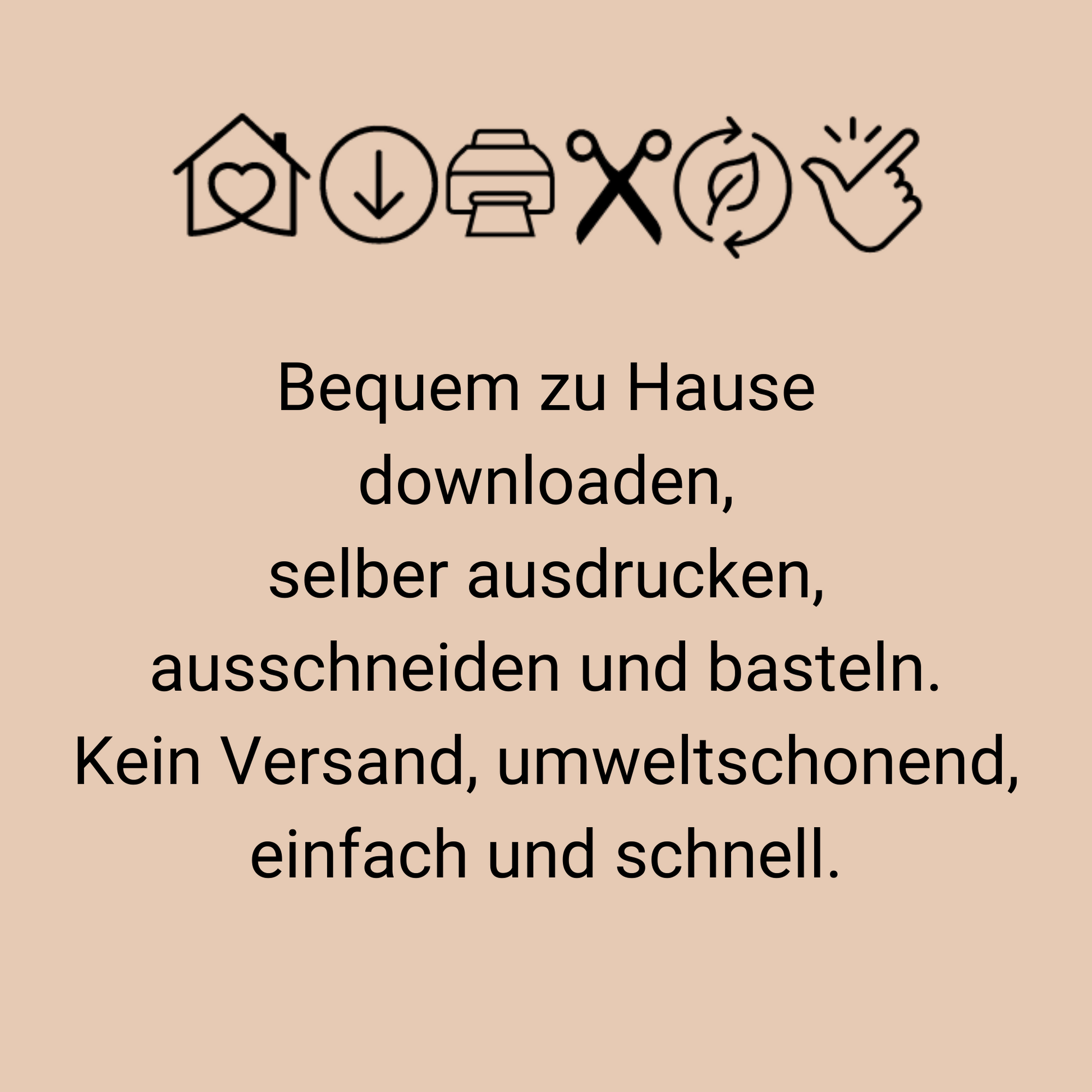 🏠 📥 💻 ✅ 🖨 ✄ 🌱 🎁 👏 (zu Hause, PDF sofort downloaden am Computer, ausdrucken, basteln, nachhaltig schenken, kein Versand)