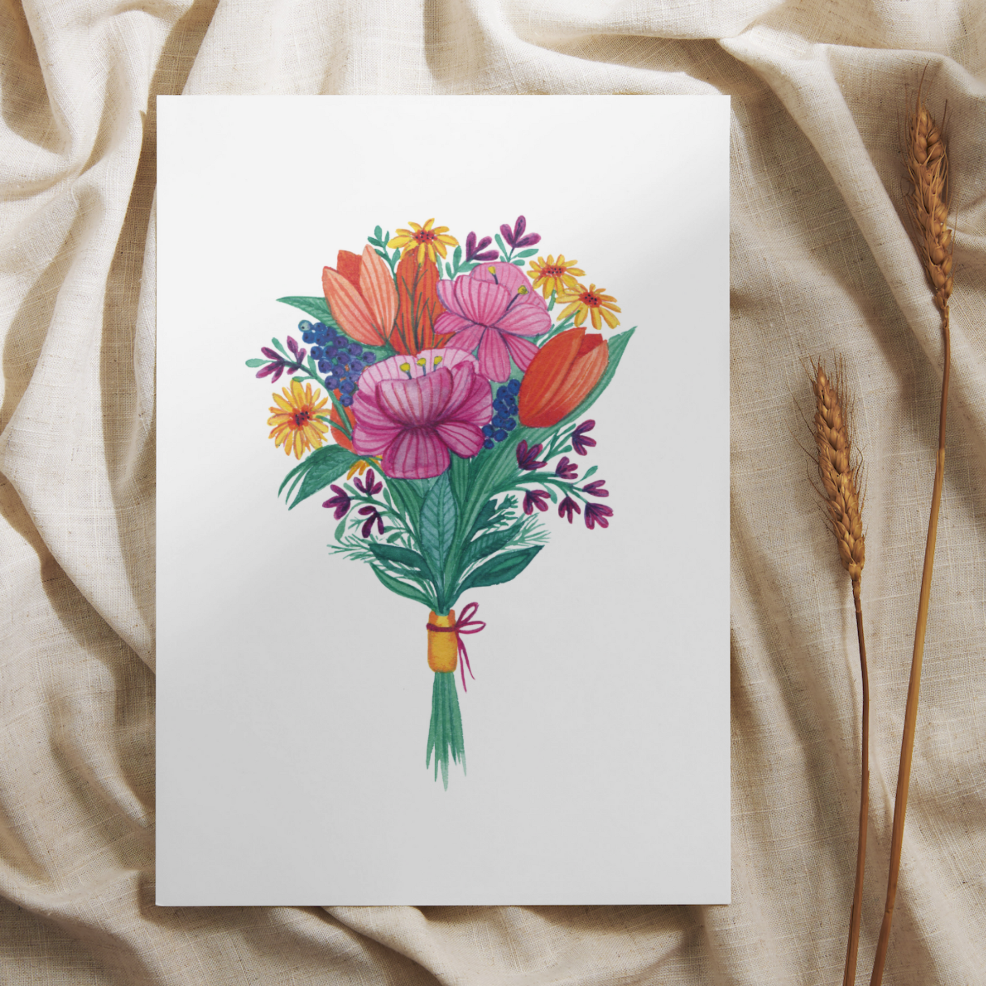 • 1 Postkarte mit buntem Blumenstrauß ohne Text (Endformat A6)eine