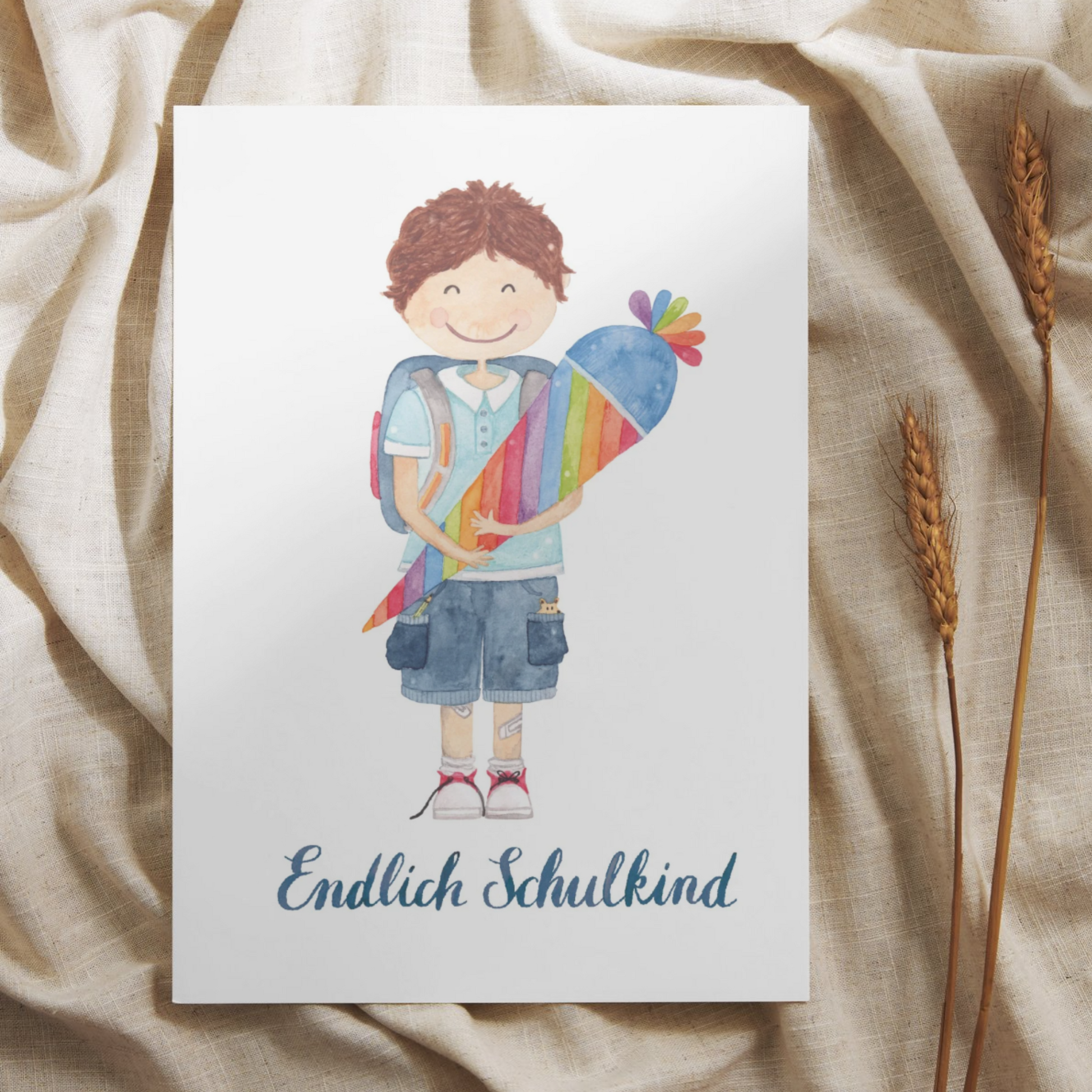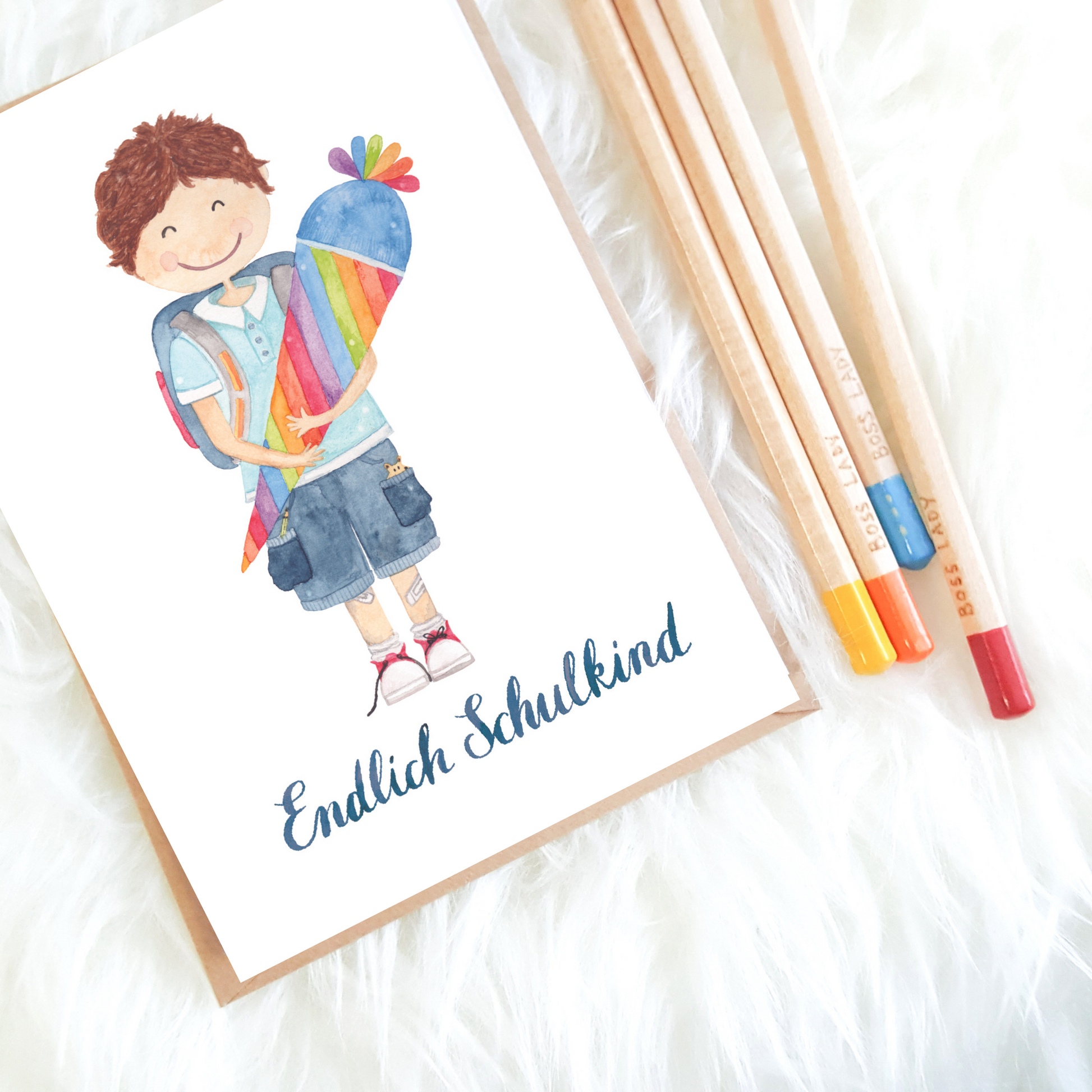 - Eine liebevoll gestaltete Karte zur Einschulung eines Jungen
