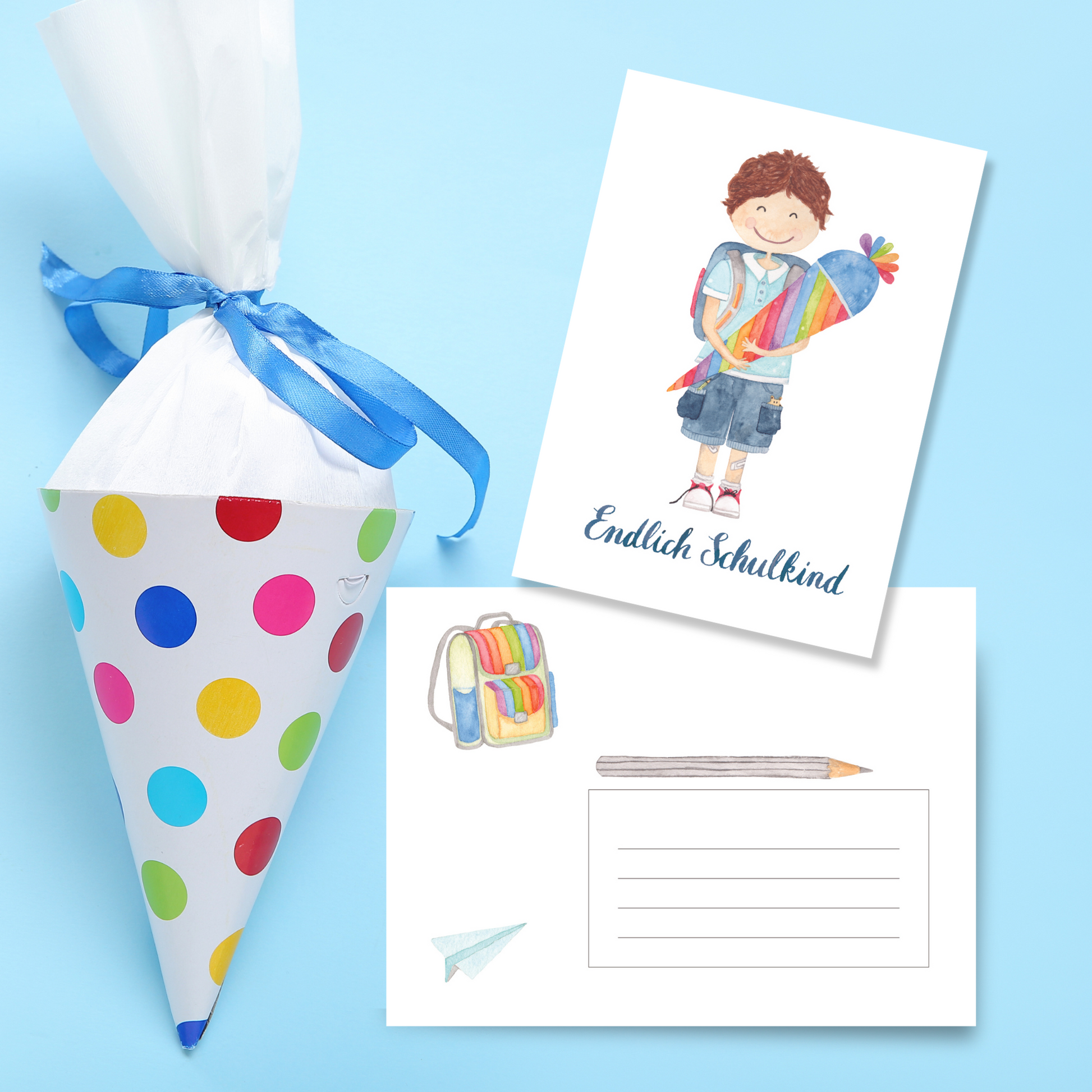 - Motiv: Schulkind Junge mit bunter Regenbogen Schultüte