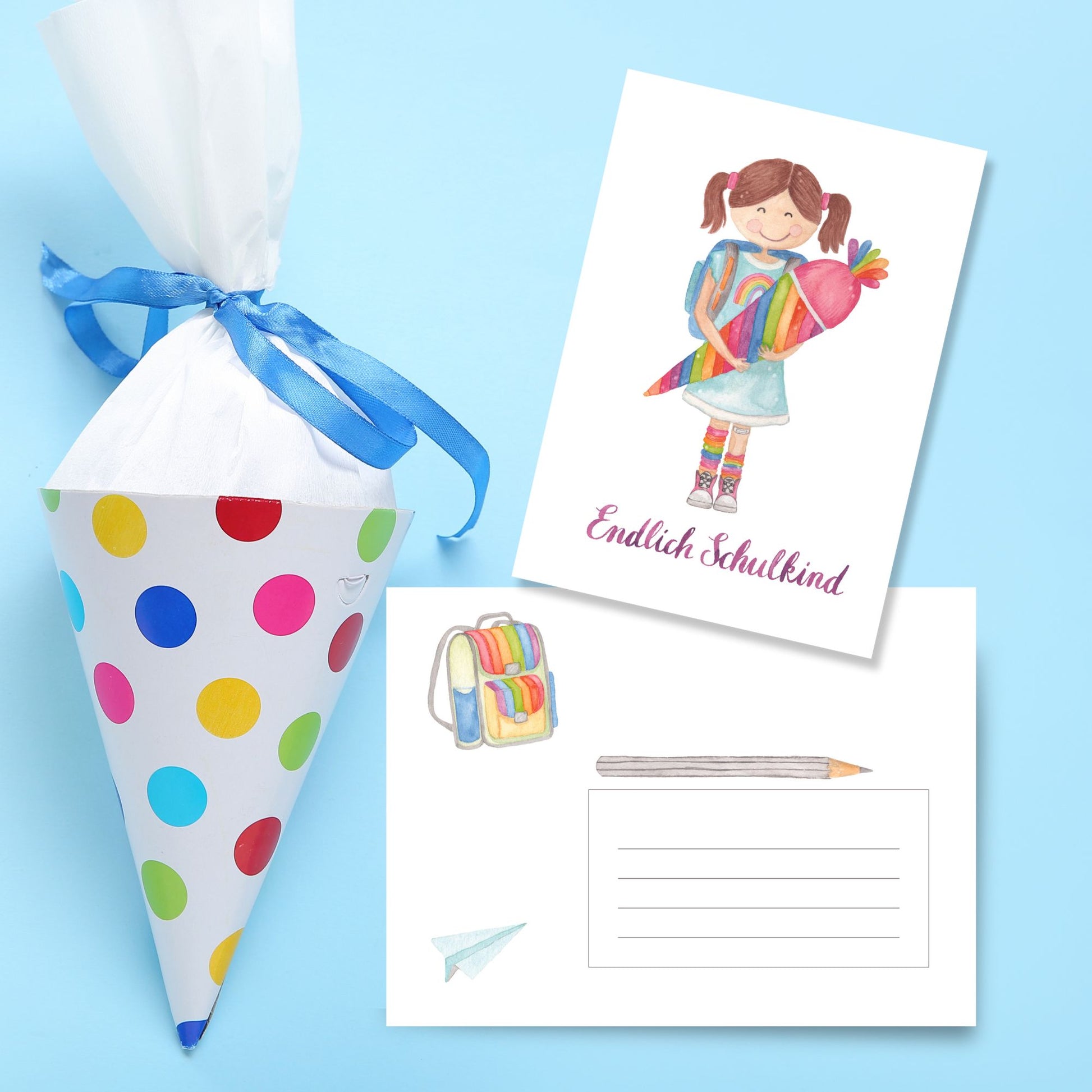 - Motiv: Schulkind mit Regenbogen-Schultüte