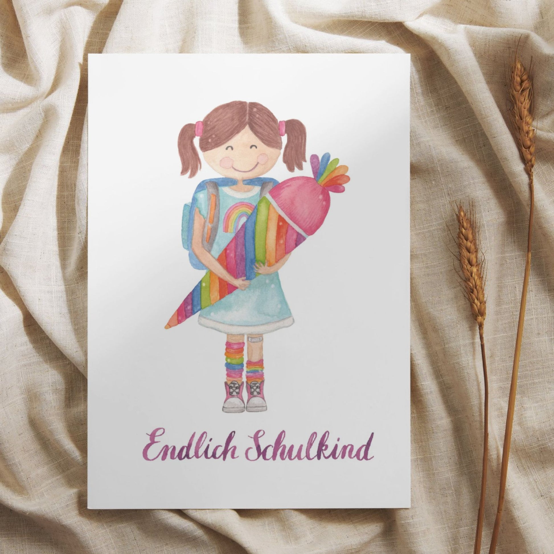 - Eine liebevoll gestaltete Karte zur Einschulung eines Mädchens