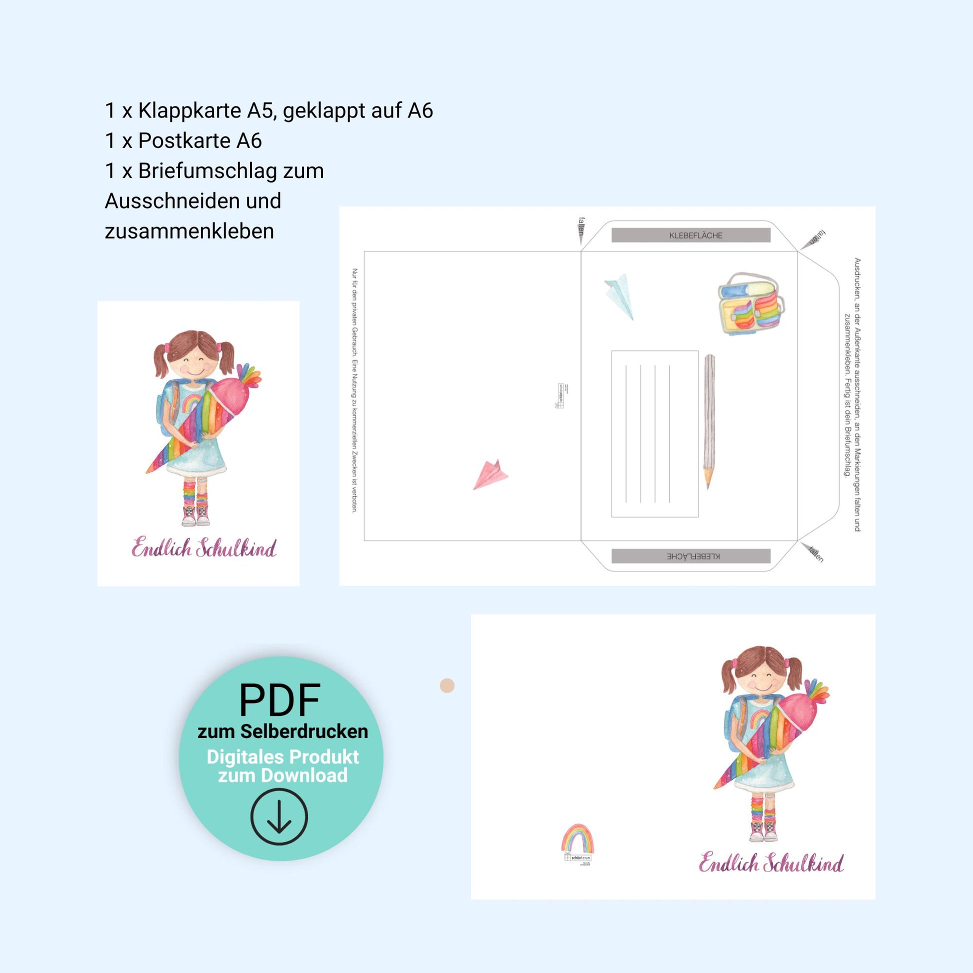 Ob als herzliche Glückwunschkarte zur Einschulung oder als stilvolle Verpackung für ein Geldgeschenk – diese Karte ist vielseitig einsetzbar und bereitet den kleinen Schulanfängern garantiert große Freude.