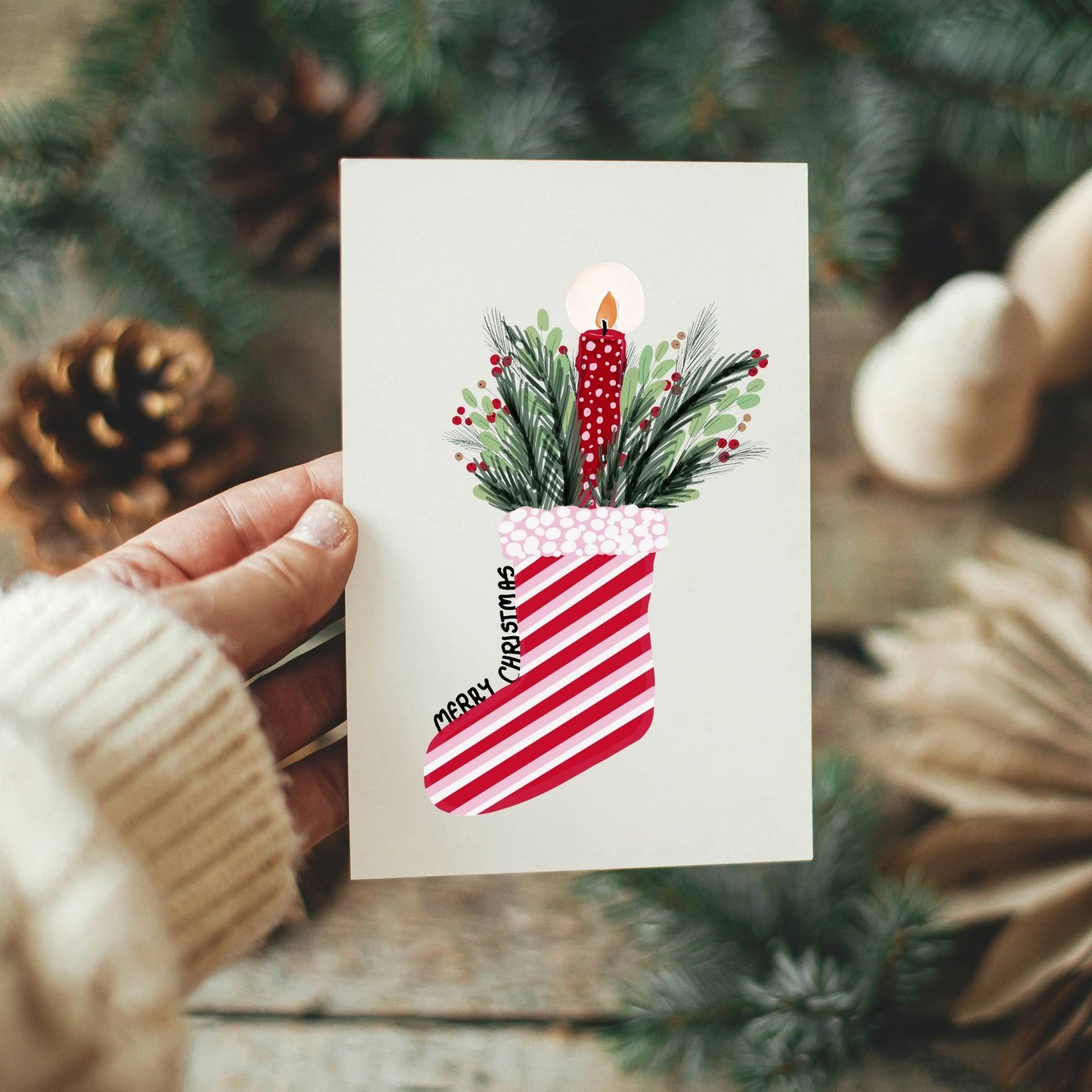 Schnell noch ein paar Weihnachtsgrüße versenden? Mit dieser handgezeichneten Karte geht es einfach und unkompliziert. In dem Merry Christmas Weihnachtsstiefel kannst du all deine liebe Wünschen niederschreiben und ggf. noch etwas Geld dazu stecken.
