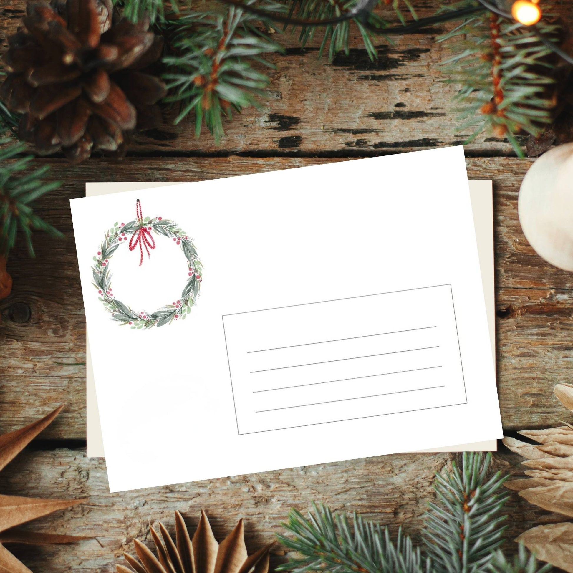 Drucke die Vorlage zu Hause aus, schneide sie aus, falte sie – fertig ist deine schnelle Weihnachtskarte mit passendem Umschlag.